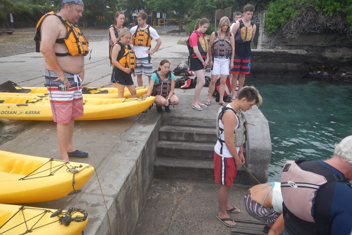 Walk the path of famous circumnavigator and explorer James Cook and visit site of historic Ka`awaloa village and Hawaiian royalty on this Kealakekua Bay kayak tour. This kayak tour is for intermediate to advanced kayak paddlers who know how to self rescue when the kayak capsizes in ocean waves. The trip is limited to those under 250 pounds, between the ages of 10 to 60 and in very good physical condition. This is not a kayak tour for beginners, non-swimmers, poor swimmers or those over 250 pounds.
